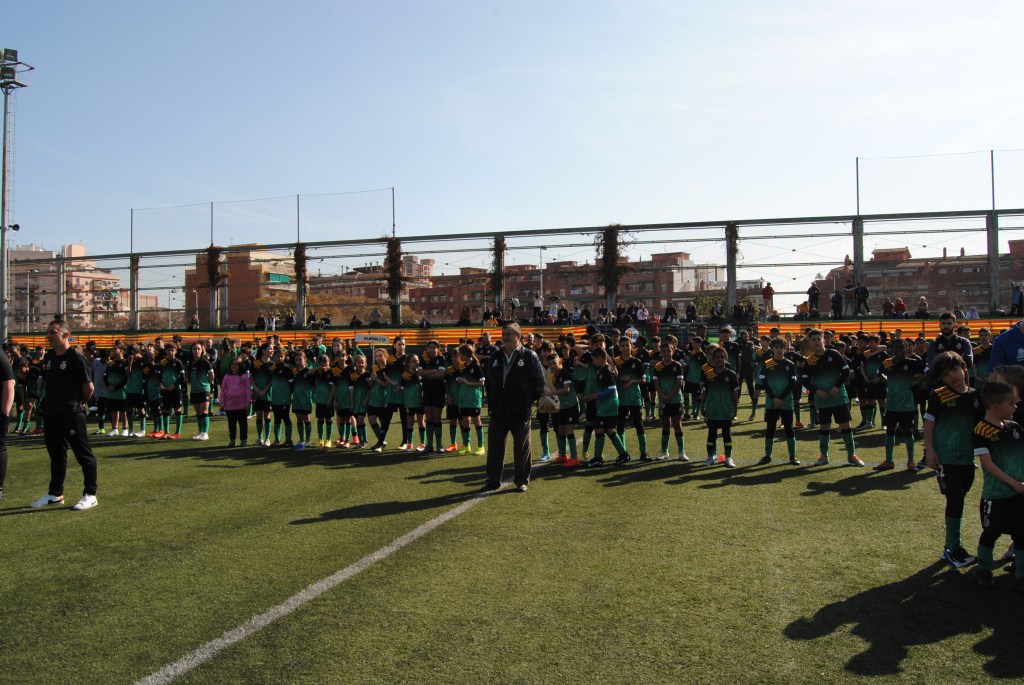 Primero han pasado todos los equipos por el photocall. Comienza el evento. Un miembro de la Junta Directiva, agradece la asistencia a todo el público e invita a disfrutar del evento preparado para ellos. Antes de iniciar la presentación, se ha sorprendido al público asistente y jugadores, con la reproducción del himno oficial de la AE La Salut Pere Gol. A continuación, se ha dado paso a la presentación de los equipos. Los jugadores han ido saliendo por orden y se han ido colocando en el centro del campo. Todo amenizado con buena música y con una presentación dinámica, que invitaba a participar desde la grada.