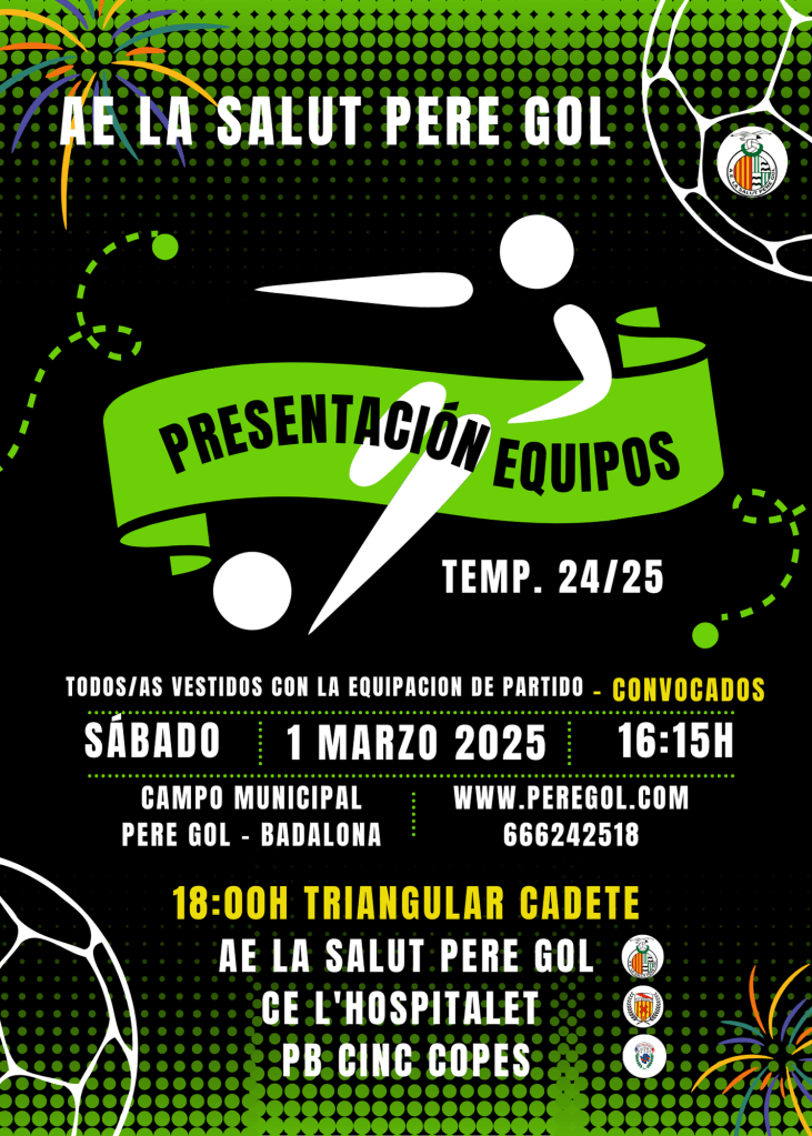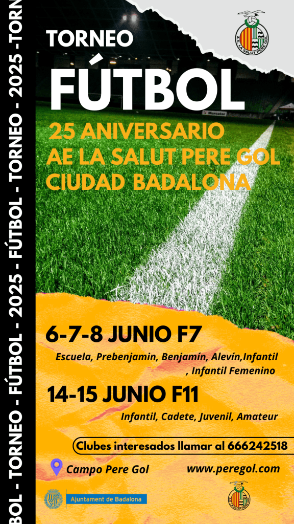 Desde la AE La Salut Pere Gol agradecemos la asistencia de los equipos participantes en el Torneo F7 del 25 Aniversario AE La Salut Pere Gol Ciudad de Badalona celebrado los días 6, 7, 8 de junio y 13, 14, 15 de junio de 2025 en el Campo Municipal Pere Gol. Un año más nuestro Read more